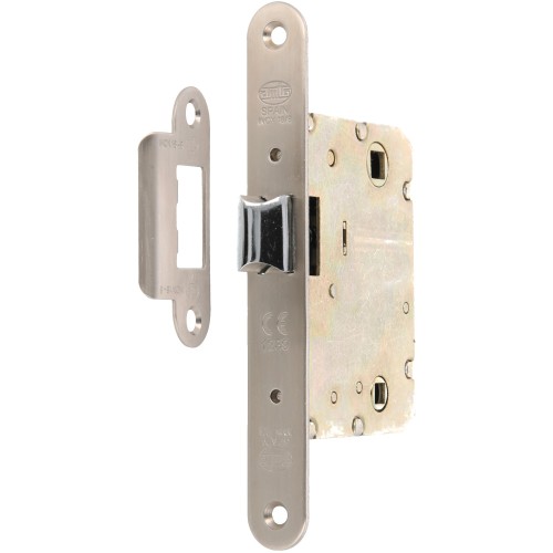 Picaporte unificado de entrada 50 mm con lengüeta reversible. Frente y soporte en canto redondo. Para manillas con cuadradillo de 8 mm y condenas de 6 mm. Distancia entre nuecas: 70 mm. Asimétrico. Largo frente: 158 mm. Ancho frente: 20 mm. Giro manilla: 23º.