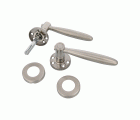 Juego de manillas de acero inoxidable 18/8 con roseta. Cuadradillo de 8 mm. Incluye accesorios de fijación.
