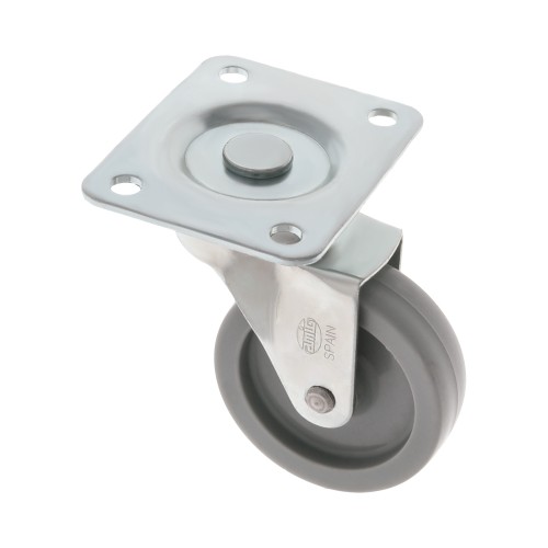 Rueda de nylon. Con pletina. Sistema de fijación con tornillos. Uso semi-industrial y mobiliario.