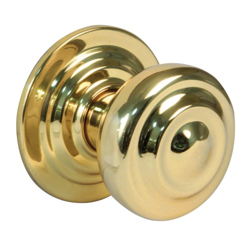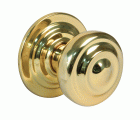Pomo para puerta fabricado en latón con acabado pulido. Base de acero recubierto de latón. Apto para puertas con un grosor máximo de 70 mm. Incluye tornillo roscado de fijación y tuerca posterior para una instalación segura.