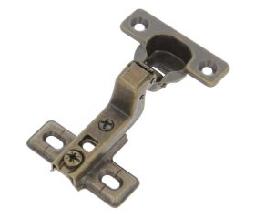 Bisagra de cazoleta fija en acero. Distancia entre agujeros: 38 mm. Apertura: 110°. Cazoleta Ø26 mm.
