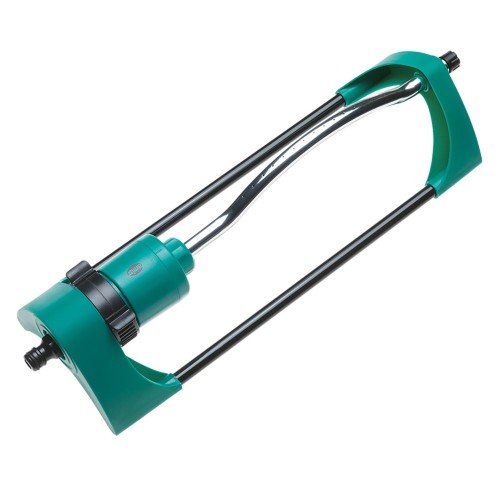 - Aspersor oscilante con base estable. Fabricado en material ABS en color verde y aluminio galvanizado. Con adaptador universal para mangueras, ideal para regar césped y plantas del jardín.