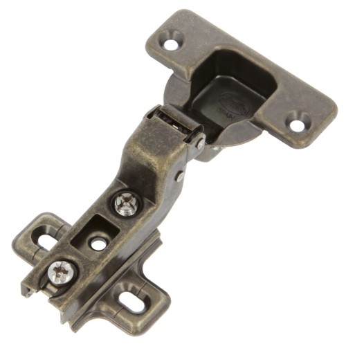 Bisagra de cazoleta super acodada en acero fija. Distancia entre agujeros: 48 mm. Apertura: 110°.