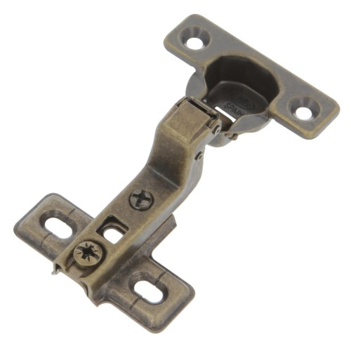 Bisagra de cazoleta fija en acero. Distancia entre agujeros: 38 mm. Apertura: 110°. Cazoleta Ø26 mm.