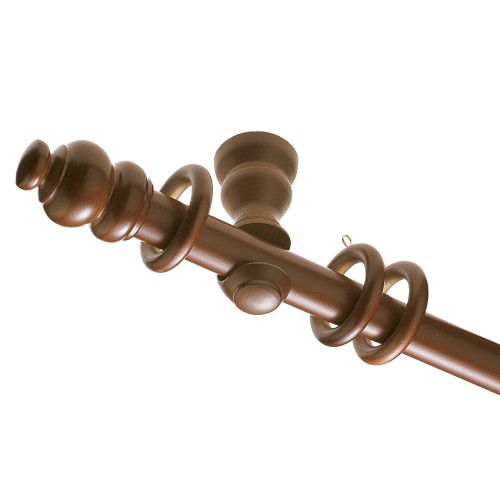 Conjunto de madera para pared. 1 barra de 2 m. 2 soportes de frente. 19 anillas. 2 terminales. Incluye accesorios de fijación.