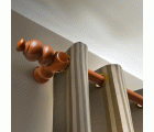 Conjunto de madera para pared. 1 barra de 2,4 m. 3 soportes de frente. 23 anillas. 2 terminales. Incluye accesorios de fijación.
