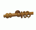 Conjunto de madera para pared. 1 barra de 2,4 m. 3 soportes de frente. 23 anillas. 2 terminales. Incluye accesorios de fijación.