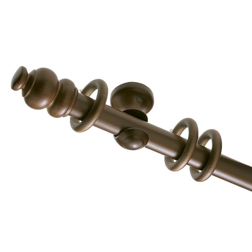 Conjunto de madera para techo. 1 barra de 2,4 m. 3 soportes de frente. 23 anillas. 2 terminales. Incluye accesorios de fijación.