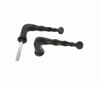 - JUEGO DE MANILLAS PARA CANCELAS O PUERTAS DE JARDÍN: De zamak sin placa y cuadradillo de 8 mm. Su diseño en estilo forja la hace muy decorativa. En color negro, un color neutro muy combinable.