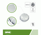 Medidas: Ø 240 x 125 mm. Potencia máxima: 100 W. Resistente al viento y a la intemperie. La carcasa protectora es de aluminio, un metal muy ligero y de larga duración. Ofrece un alto grado de protección contra el óxido y la corrosión.