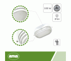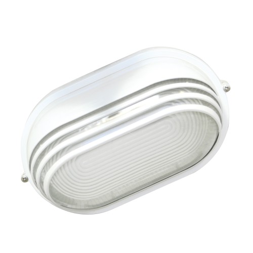 Aplique decorativo ovalado con rejilla de protección de aluminio. Perfecto para exteriores gracias a su grado de estanqueidad IP44. En color blanco, muy combinable con cualquier color y material de la pared.