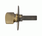 Muletilla con placa fabricada en latón de alta calidad. Placa circular de diámetro 42 mm con dos orificios avellanados de amarre. Para manillas de roseta. Cuadradillo de 6 mm. Incluye accesorios de fijación.