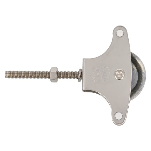 Polea de acero inoxidable 18/8 con roldana metálica de Ø 39 mm. Con tornillo de sujeción y guías. Para tendederos de ropa.