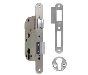 Cerradura de embutir para puertas de madera con paletón de cierre. Picaporte reversible de acero cromado. Distancia entre nueca de manilla y alojamiento de cilindro Europerfil: 47 mm. Entrada: 50 mm. Nueca para manilla de 8 mm. Caja cerrada y mecanismo interior de acero bicromatado. Palanca de cierre de acero cromado, desplazamiento 20 mm (2 vueltas). Sin cilindro. 2 bocallaves modelo 23.