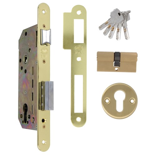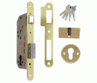 Cerradura de embutir para puertas de madera con paletón de cierre. Picaporte reversible de acero cromado. Distancia entre nueca de manilla y alojamiento de cilindro Europerfil: 85 mm. Entrada: 50 mm. Nueca para manilla de 8 mm. Caja cerrada y mecanismo interior de acero bicromatado. Palanca de cierre de acero cromado, desplazamiento 20 mm (2 vueltas). Incluye cilindro de seguridad modelo 9850 de 60 (30-30) mm y bocallave modelo 22. Homologada con marcado CE según norma EN 12209:2004.