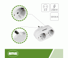 AMIG 8399 | Adaptador schuko de 2 vías 3209 | 76 x 93 x 50 mm | Policarbonato | Blanco