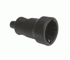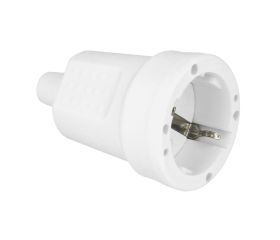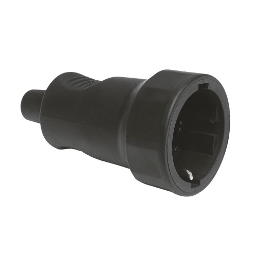 Base aérea Schuko de goma con toma de tierra. Amperaje máximo: 10/16 A. Voltaje máximo: 250 V.