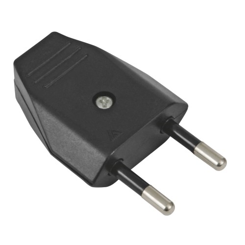 Clavija sin toma de tierra. Pines de Ø 4 mm. Amperaje máximo: 10 A. Voltaje máximo: 250 V.