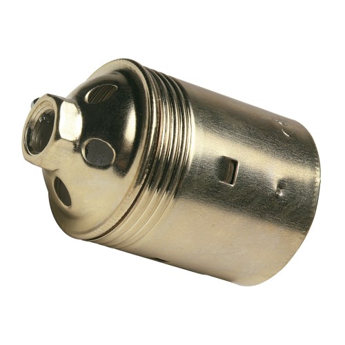 Portalámparas metálico con el cuerpo liso. Para bombillas con rosca E27. Amperaje máximo: 4 A. Voltaje máximo: 250 V.