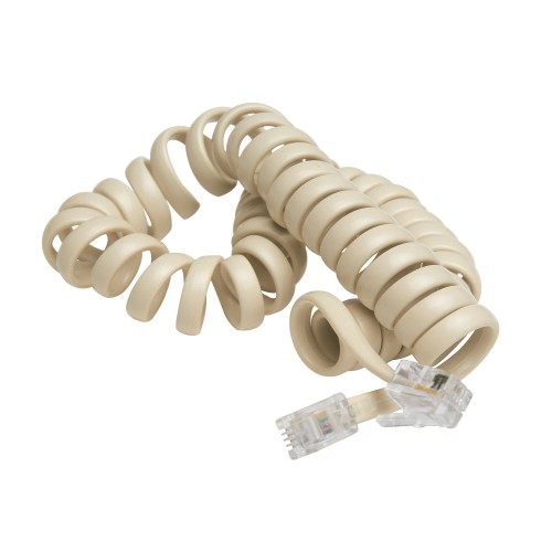 Prolongador telefónico 6P4C rizado. 2 conectores de 6 posiciones y 4 contactos.