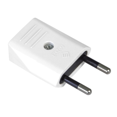 Clavija sin toma de tierra. Pines de Ø 4 mm. Amperaje máximo: 10 A. Voltaje máximo: 250 V.