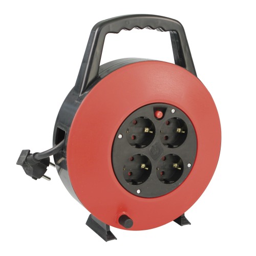 Tambor alargador de cables con bobina para uso en interiores de casas, todo tipo de talleres, obras, caravanas o campings. Perfecto para conectar de forma cómoda y segura múltiples aparatos eléctricos simultáneamente.