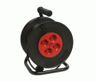 Enrollacables con bastidor para bricolaje con 4 bases Schuko con toma de tierra. Cable 3G 1,5 mm². Potencia máxima enrollado: 1000 W. Potencia máxima desenrollado: 3000 W.