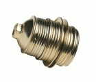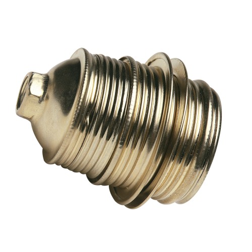 Portalámparas metálico con el cuerpo roscado y 2 arandelas. Para bombillas con rosca E27. Amperaje máximo: 4 A. Voltaje máximo: 250 V.
