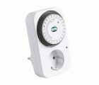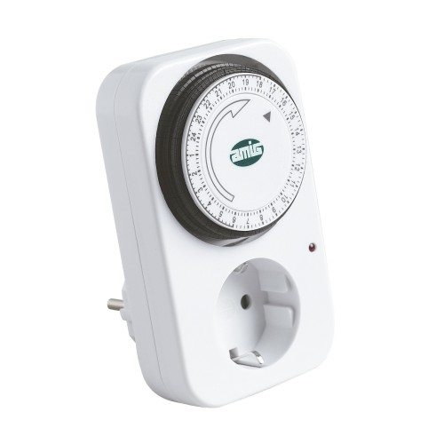 Programador mecánico con interruptor e indicador de funcionamiento. Maniobra mínima: 15 min. Amperaje máximo: 16 A. Voltaje máximo: 230 V. Potencia máxima: 3680 W.