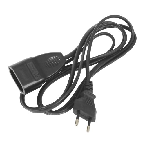 Prolongador sin toma de tierra. Cable de 0,75 mm². Amperaje máximo: 2,5 A. Voltaje máximo: 250 V.