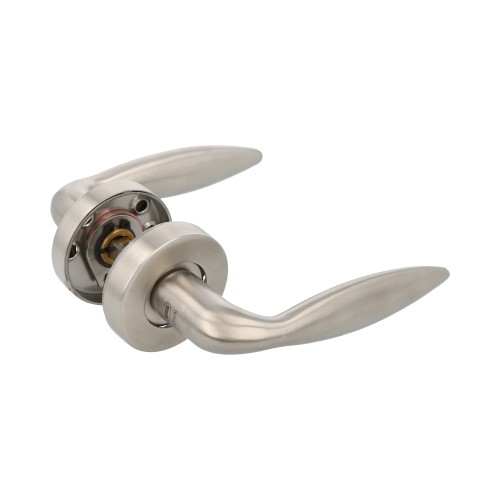 - JUEGO DE MANILLAS CON ROSETA: Juego de manillas de Acero Inoxidable con roseta redonda, para puertas de interior o exterior. De diseño sencillo y moderno, con cómoda manivela que se adapta a la mano y no resbala. Se recomienda limpiar con un paño húmedo.