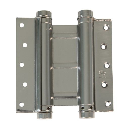 BISAGRA DE ACCIÓN DOBLE: Esta bisagra de acción doble o vaivén en dos sentidos es un elemento fundamental para el funcionamiento de puertas de entrada y de paso. Posee un sistema universal de 2 hojas, con 8 orificios avellanados.