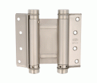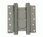 Bisagra de doble acción con canto cuadrado. Muelle de acero elástico flexible para cierre automático de puertas. Regulación de potencia de cierre, incluye llave Allen. Gran resistencia a la torsión.
