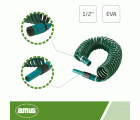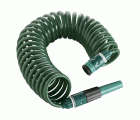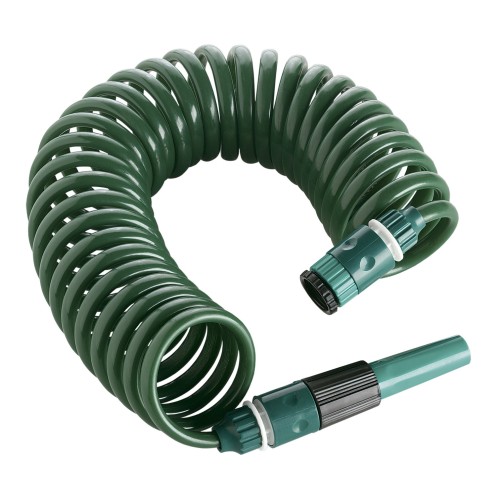 Manguera en espiral con accesorios de 3/8''. Incluye lanza de riego.