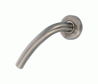 Manilla de acero inoxidable 18/8. Con roseta interior de latón. Cuadradillo de 8 mm. Para puertas de entrada.