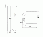 - Elaborado con Acero Inoxidable, material duro empleado por su buena resistencia mecánica o a la tracción. Largo de 136 mm. Diámetro de 19 mm. Placa de 230 x 40 x 10 mm. Manivela funcional y ergonómica acabada en plateado. Incluye tornillos.