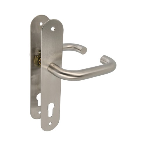 Juego de manillas de acero inoxidable 18/8 con placa. Cuadradillo de 8 mm. Con bocallave.