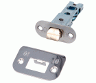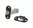 Picaporte de embutir con frente y soporte en canto redondo.Para pomos o manillas de roseta con tornillos pasantes con cuadradillo de 8 mm en puertas de madera de paso.