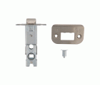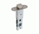 Picaporte de embutir con frente y soporte en canto redondo.Para pomos o manillas de roseta con tornillos pasantes con cuadradillo de 8 mm en puertas de madera de paso.