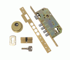 Cerradura de embutir para puertas de madera con bulones de cierre. Canto cuadrado. Frente y soporte. Picaporte reversible. Caja cerrada y piezas internas de acero bicromatado. Distancia entre nueca de manilla y alojamiento de cilindro Europerfil: 85 mm. Nueca para manilla de 8 mm. Desplazamiento: 20 mm (2 vueltas). Cilindro de seguridad modelo 9850 de 60 (30-30) mm. Escudo de seguridad modelo 31 sin bocallave.