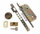 Cerradura de embutir para puertas de madera con bulones de cierre. Canto cuadrado. Frente y soporte. Picaporte reversible. Caja cerrada y piezas internas de acero bicromatado. Distancia entre nueca de manilla y alojamiento de cilindro Europerfil: 85 mm. Nueca para manilla de 8 mm. Desplazamiento: 20 mm (2 vueltas). Cilindro de seguridad modelo 9850 de 60 (30-30) mm. Escudo de seguridad modelo 31 sin bocallave.