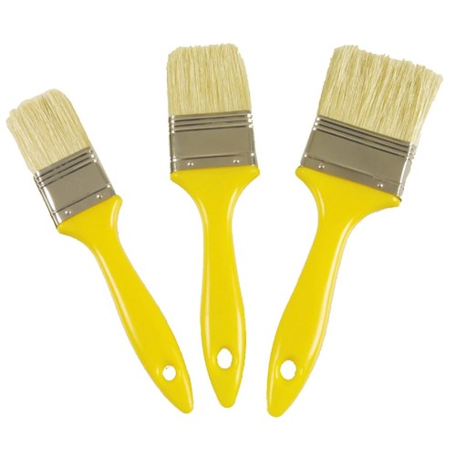 Paletina doble. Mezcla de PVC y cerda pura. Mango de polipropileno amari llo. Virola niquelada. Para barnizar.
