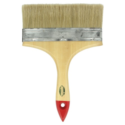 Mezcla de PVC y cerda pura. Mango de madera barnizada. Virola niquelada. Indicada para trabajos en grandes superficies.