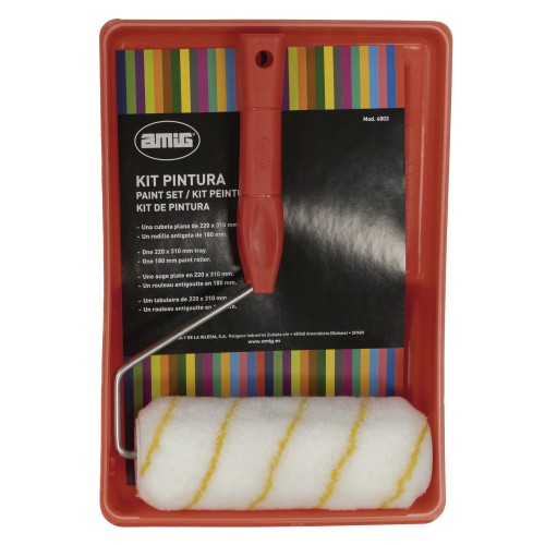 1 cubeta plana. 1 rodillo antigota de 180 mm.