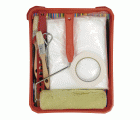1 cubeta plana. 1 rodillo de paredes y techos de 220 mm. 1 paletina doble de 20 mm. 1 paletina doble de 40 mm. 1 cinta adhesiva de 18 mm. 1 plástico de protección. 1 abrebotes de pintura. 1 removedor de pintura.