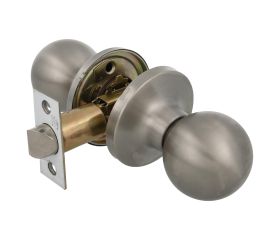 - JUEGO DE POMOS TIPO BOLA: Función de paso, que permite que la manilla se accione libremente desde ambos lados, ya sea para entrar o salir. No es necesario girar o accionar la manilla para abrir la puerta desde el lado interior o exterior.