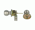 Juego de pomos tipo bola con picaporte de entrada 60/70 mm incluido. Picaporte de canto cuadrado. Función Privado, con dispositivo de emergencia en el exterior y condena en el interior: con la condena se bloquea el sistema y con el dispositivo de emergencia exterior se libera. Para puertas de madera de anchura de 35 a 45 mm.