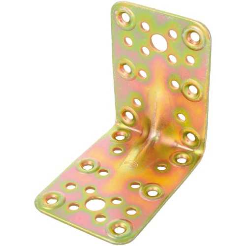Ángulo reforzado perforado en acero. Fijación de estructuras de madera. Disponibles en varias medidas y acabados.