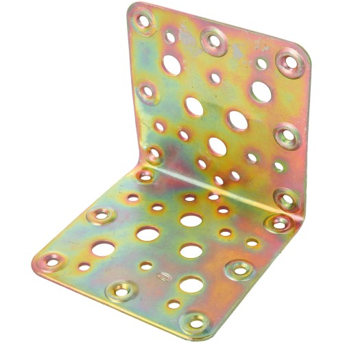 Ángulo reforzado perforado en acero. Fijación de estructuras de madera. Disponibles en varias medidas y acabados.