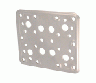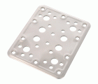 Placa plana perforada de acero inoxidable. Fijación de estructuras de madera. Disponible en diferentes medidas y acabados.